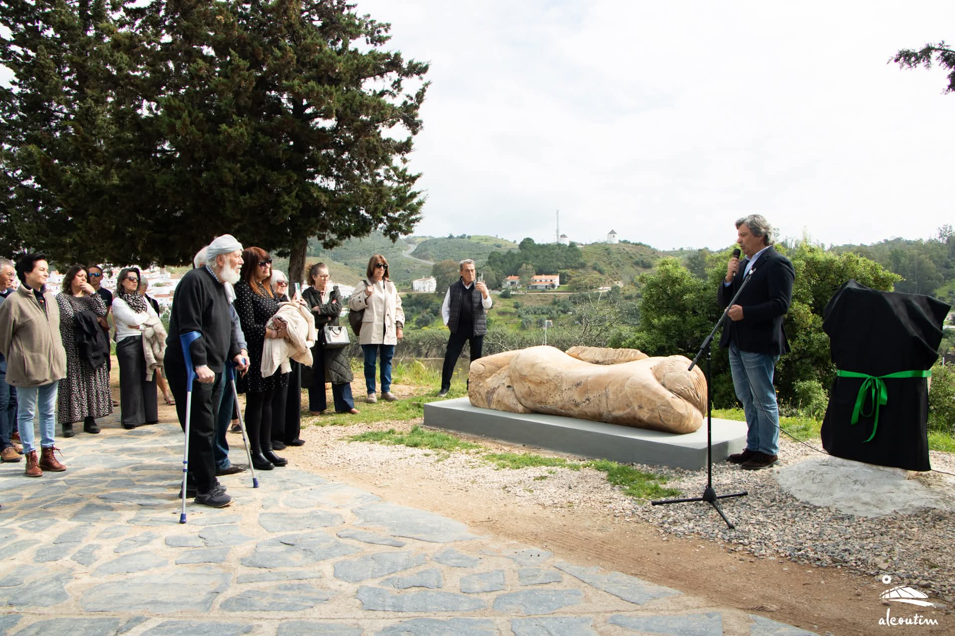 **Alcoutim, 23 de março** – A vila de Alcoutim viu o seu património artístico reforçado ontem, dia 22 de março, com a inauguração da escultura “Mujer Tumbada”, doada ao município pelo artista plástico espanhol Pepe Gámez. A obra foi instalada num local de destaque na vila, tornando-se um novo ponto de interesse cultural.